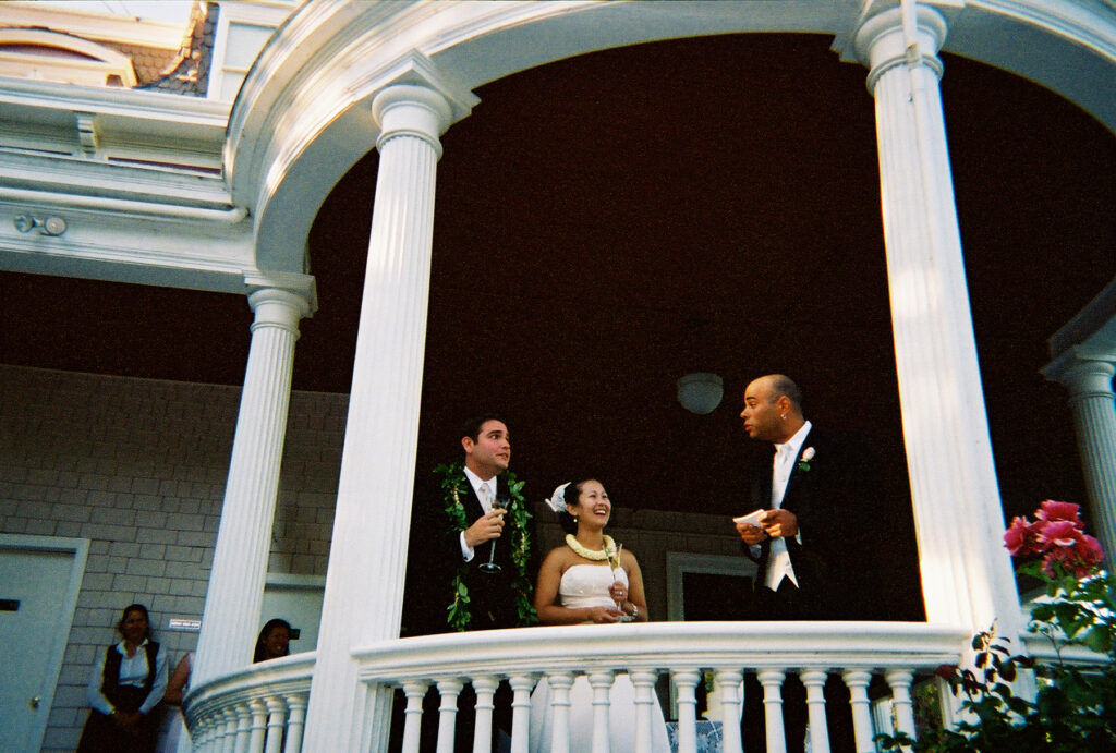NICOLE & I watching on as JOSEPH WRIGHT gives his amazing Best Man Toast at our wedding at CHURCHILL MANOR in Napa, California on Saturday, 17 July, 2004